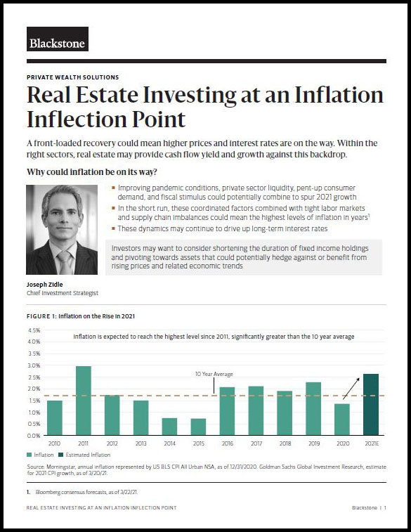- Green Street Advisors, as of 3/1/21. Major sectors include apartments, industrial, mall, office, and strip centers. Past performance is not indicative of future results. There is no guarantee that any of these trends will continue or will not reverse. There is no guarantee that any risk can be mitigated in whole or in part.